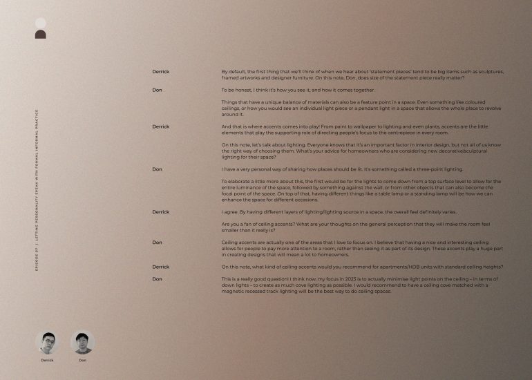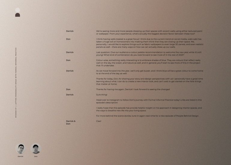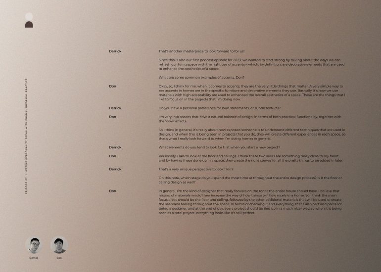 Making the most of the first podcast episode of 2023, we’ve invited Don from Formal Informal Practice to share valuable tips on ways to make your space stand out with accents while getting to know his journey as an interior designer who has come a long way from working with luxury and brands to designing beautiful homes that are brimming with personality.